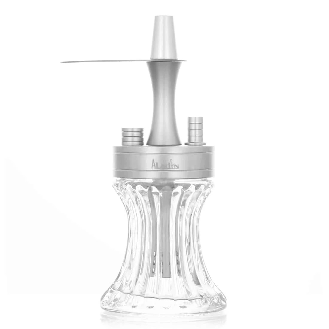 Aladin 2GO er en portabel vandpibe specielt designet til at tage med på farten. Med kun 23 cm i højden uden hoved er den blandt de mindste vandpiber på markedet, men den leverer stadig en solid session. Den sølvfarvede gradient i glasset giver hver enkelt vandpibe et elegant og moderne udseende, da ingen to er helt ens.