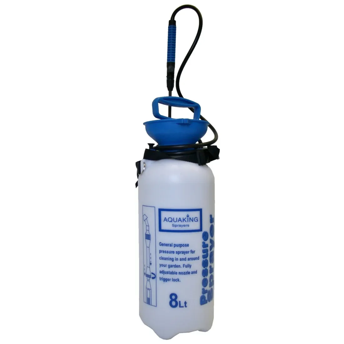 AquaKing Tryksprøjte på 8 liter er den største model i serien og velegnet til større arealer, drivhuse og haver hvor en større tankkapacitet reducerer antallet af påfyldninger. Sprøjten er produceret i Holland og bygget til intensiv brug med fokus på holdbarhed og funktionalitet.
