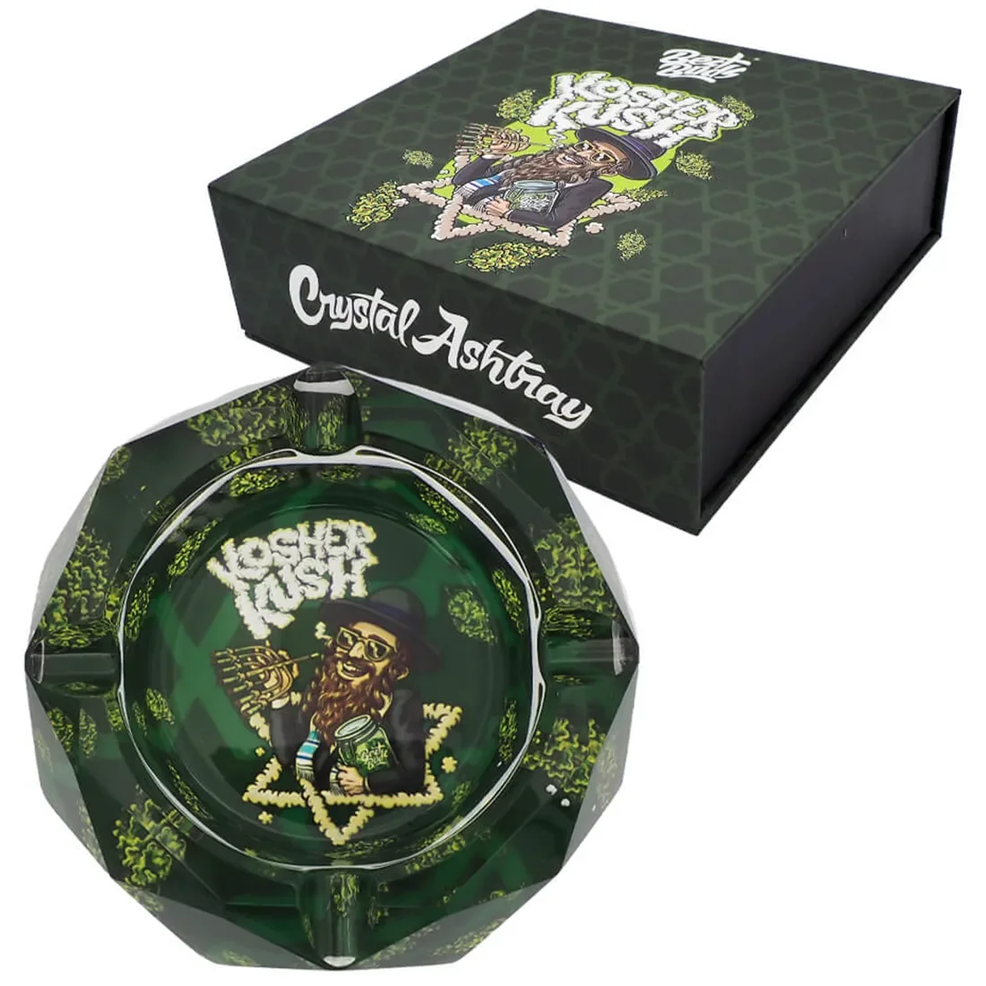 Best Buds Crystal Ashtray Kosher Kush er et flot glasaskebæger med en dyb mørkegrøn farvetone. Krystalglasset fanger lyset og giver askebægeret et stilfuldt udseende der skiller sig ud fra kedelige standardmodeller. Det er et askebæger med personlighed for dem der vil have noget anderledes.