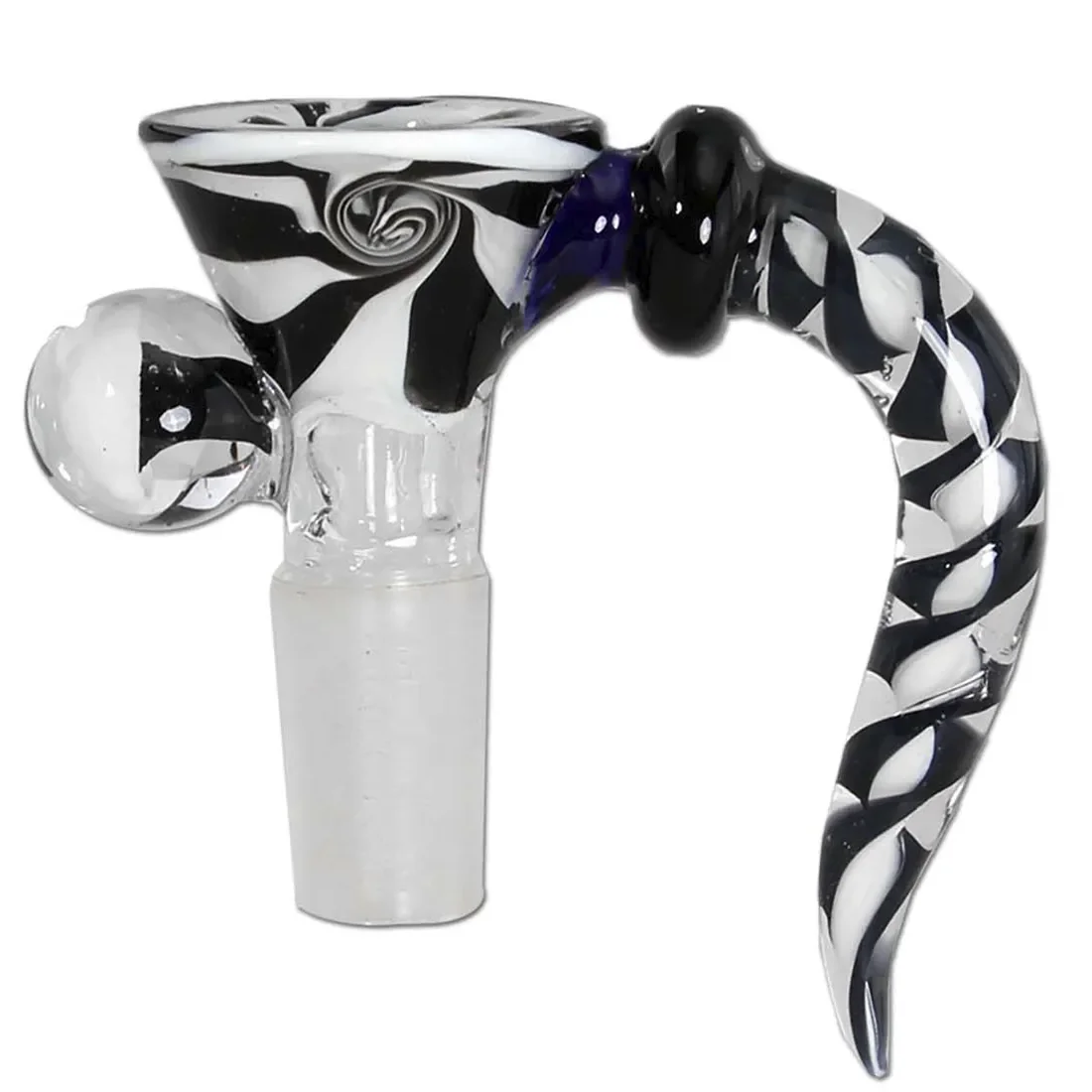 Black Leaf kunsthoved i flerfarvet borosilikatglas med sort swirl-design, håndlavet i ekstra solid kvalitet. Den store hank på siden gør hovedet praktisk at håndtere, og glasbold med dekorativ svamp fungerer som rullestopper. Black Leaf-logoet er indgraveret på siden.