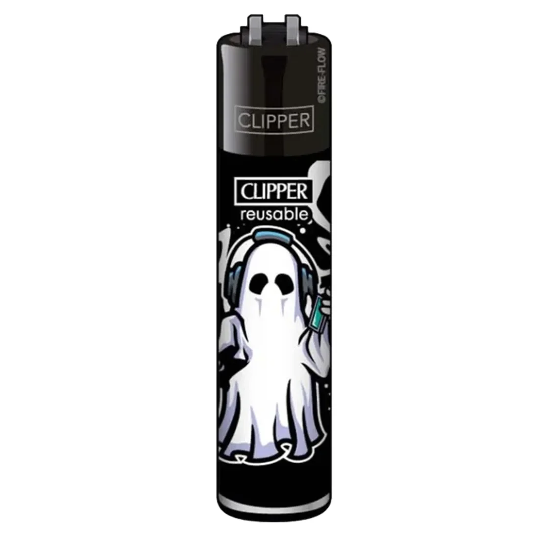 Clipper Hiphop Ghost viser et hvidt spøgelse med høretelefoner på, klar til at droppe beats. Motivet kombinerer spooky vibes med hiphop-kultur.