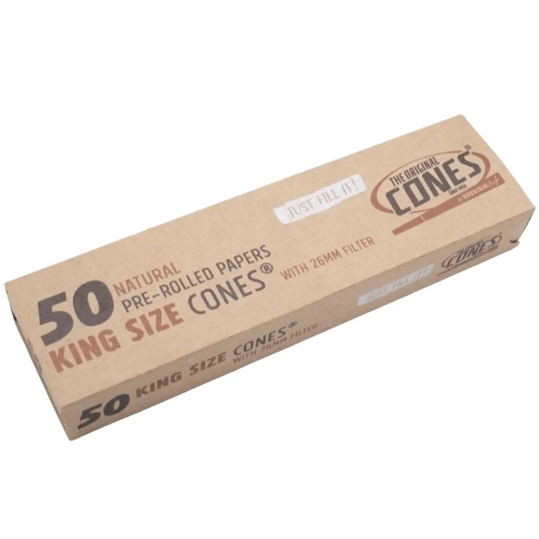 Cones Original Natural Basic King Size i storkøbspakke med 50 cones. Fremstillet af rent rispapir der er tyndt, ubleget og giver en neutral smag.