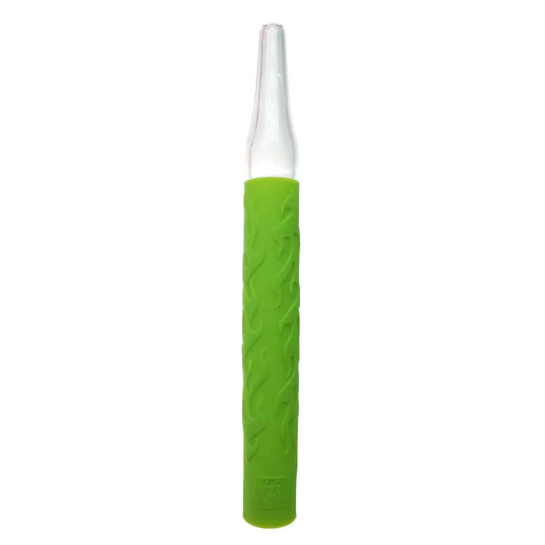 Crystal Flame mundstykke er fremstillet i solidt glas og udstyret med et blødt, grønt silikonegreb. Kombinationen giver både et flot udseende og en behagelig fornemmelse i hånden, selv under de længere sessioner.