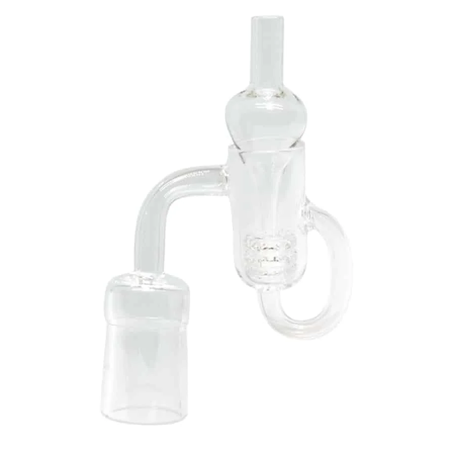 eBeem Recycling Quartz Banger har et anderledes design der giver røgen længere cirkulation inde i glasset. Det betyder at dampen når at køle lidt mere ned inden den inhaleres, hvilket kan give en blødere session.
