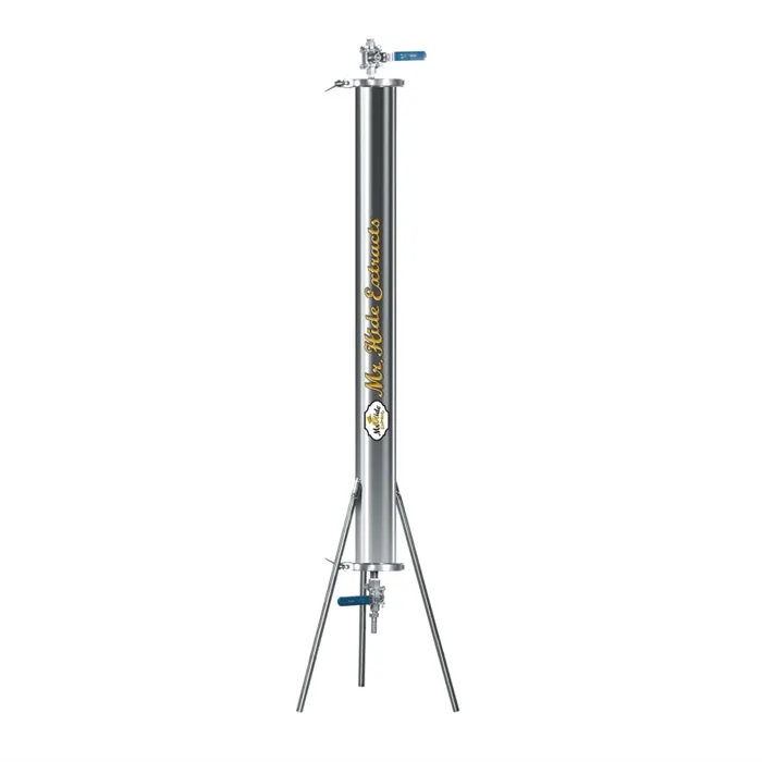 Nem håndtering og fremragende resultater i lave mængder. En hurtig og nem måde at behandle dit plantemateriale på. Ekstraktoren er let og robust, lavet af 100% 304 rustfrit stål og 316 fødevare stål. Udstyret med to sikkerhedshaner til ind- og udgang af gas. Den har aftagelige ben for komfort ved brug af søjlen og transport. Det inkluderer klemmefilter / pakning 150 rustfrit 316 Masch. 1 x Pakningsklemme. 2 x Klemmeklips Mulighed for at samle flere kolonner for større kapacitet. Kapacitet: 100 Gram (185 ved friskt materiale) Størrelse: 50 x 650 mm Vægt: 7 kilo
