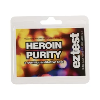 Heroin Purity Test giver dig mulighed for hurtigt at få en ide om heroins renhed. Bare åbn ampullen, tilføj (NØJAGTIGT!) 20 milligram af din prøve til denne test. Det nederste lag afslører en gul / orange farve, der bliver mørkere, når der er mere heroin til stede i prøven. Du får dit resultat inden for få sekunder. Dette er langt den mest avancerede test på markedet for folk, der ønsker at vide, hvad de har at gøre med. EZ Test Heroin Purity Test er meget ufølsom over for de sædvanlige nedskæringer såsom mannitol og andre kendte skære stoffer, der almindeligvis findes i heroin. Denne test kan ikke fortælle dig noget om identiteten af det stof, der muligvis er blevet brugt til at skære prøven.