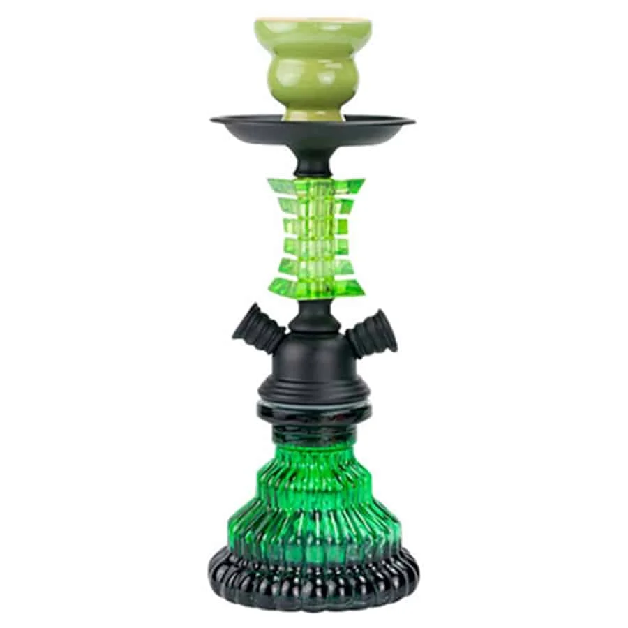 Designet holder en gennemført stil med matchende grønne detaljer på både glasbasen, akrylelementerne og vandpibehoveddet. Den sorte aluminium downtube giver en flot kontrast til det grønne tema og kan fjernes for at gøre rengøring nemmere.
