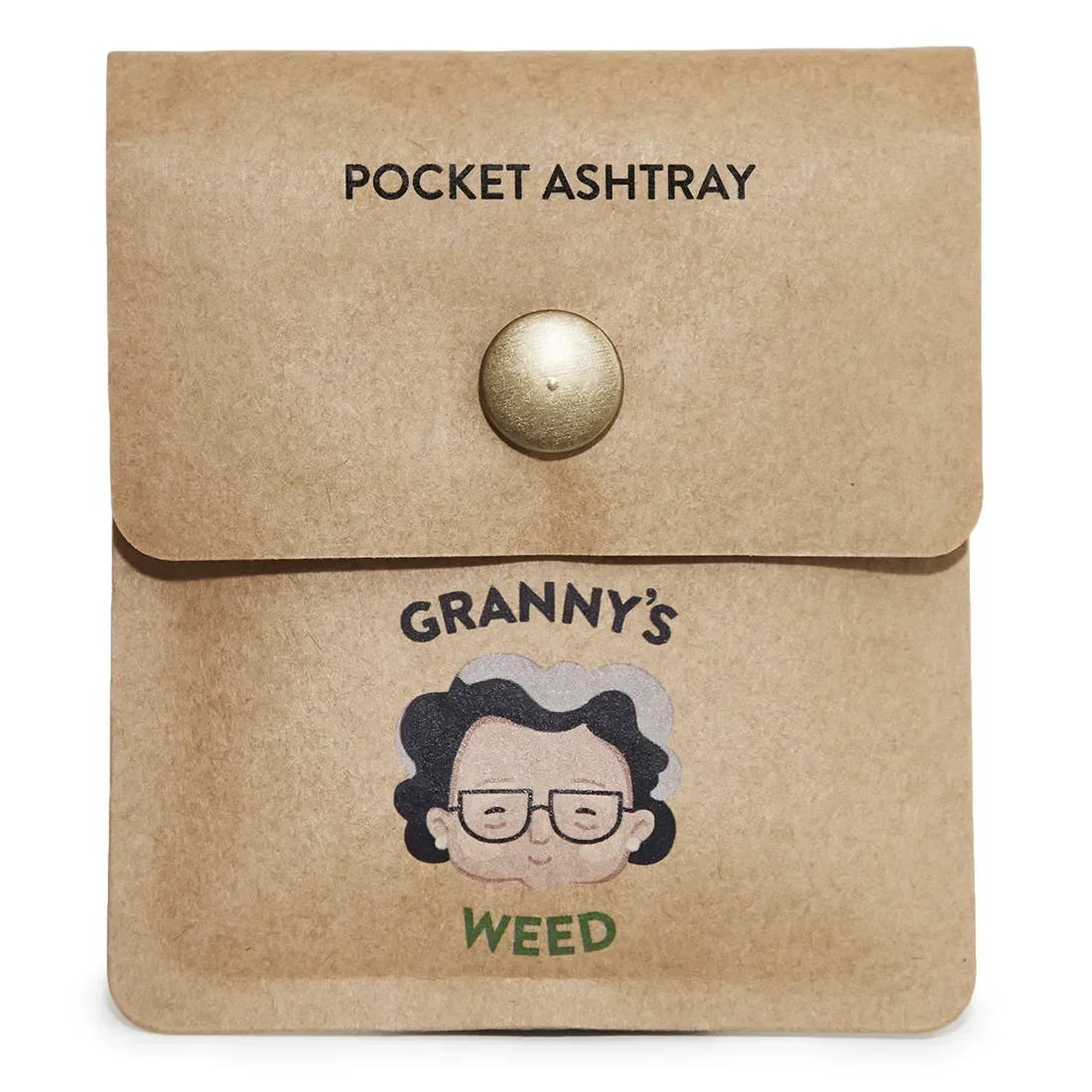 Granny's Weed-serien er kendt for deres praktiske produkter med humoristiske designs. Lommeaskebægeret er velegnet til festivaller, camping eller bare en tur i parken hvor der ikke er et askebæger i nærheden. Et lille tilbehør der hjælper miljøet og holder dine omgivelser rene for skodder og aske. Materialet holder i lang tid og tåler at blive brugt hver dag.