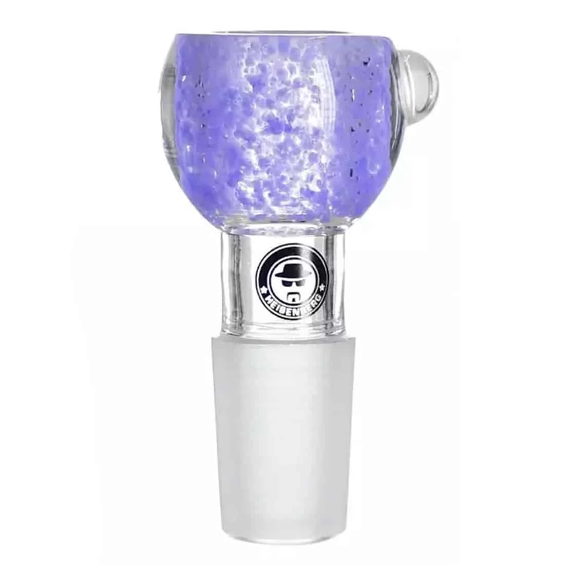 Heisenberg Grinsbowl i lilla med et kugleformet kammer til dine urter. Glasset har en bred tykkelse der giver kvalitet og holdbarhed, og rullestopperen på siden sikrer at hovedet ikke glider af bordet.