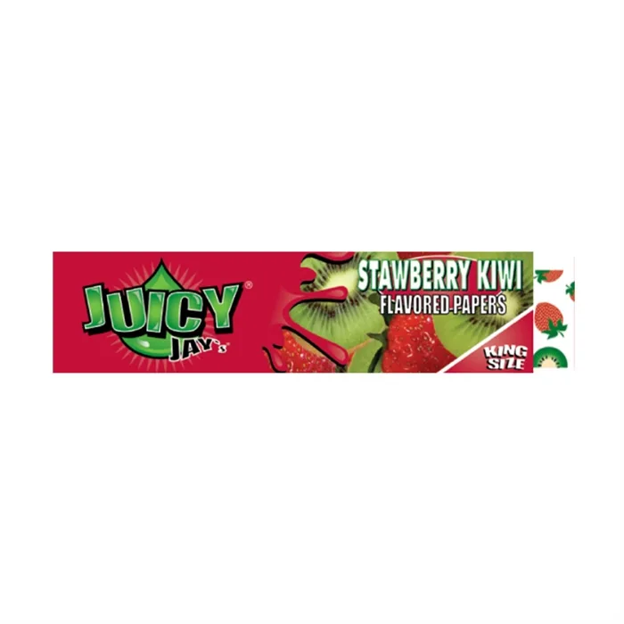 Jointpapir fra Juicy Jays med smag af Jordbær & Kiwi, papiret er lavet af hamp, med en fruity smag. En pakke indeholder 32 stk Juicy jointpapir King Size Slim Størrelse: King Size Slim Smag: Strawberry / Kiwi – Jordbær / Kiwi