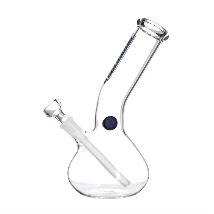 Glasbong fra Heisenberg, ca. 23 cm høj, lidt større end blowjob bongen, med slamrør og bonghoved i et stykke. Enkel og lille bong, med en lille pris. Påtrykt HNBG logo på sugerøret