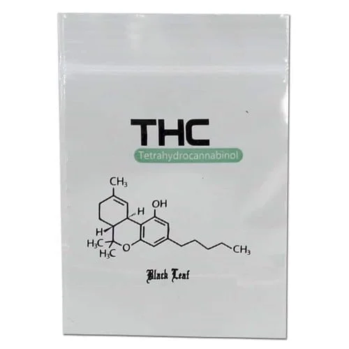 Disse lynlåsposer fra Black Leaf har et design med den kemiske THC-struktur. De er fremstillet af gennemsigtig fødevaregodkendt plastik.