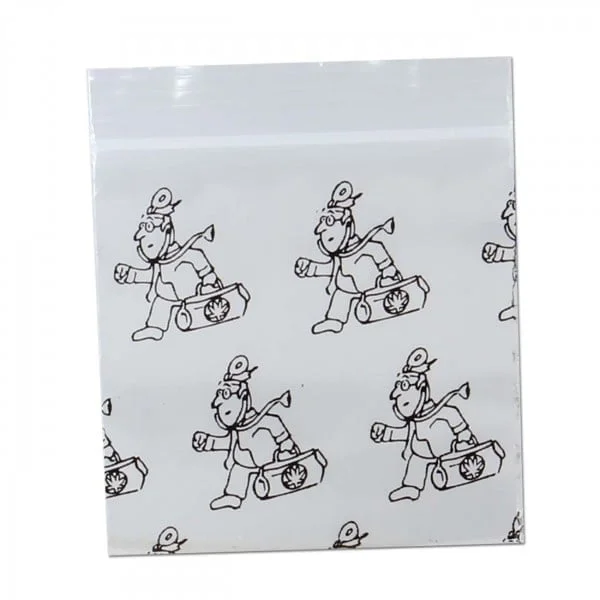 Disse små lynlåsposer er velegnet til opbevaring af urter, tobak eller andre småting. De er fremstillet af gennemsigtig plastik med et doktor-motiv.
