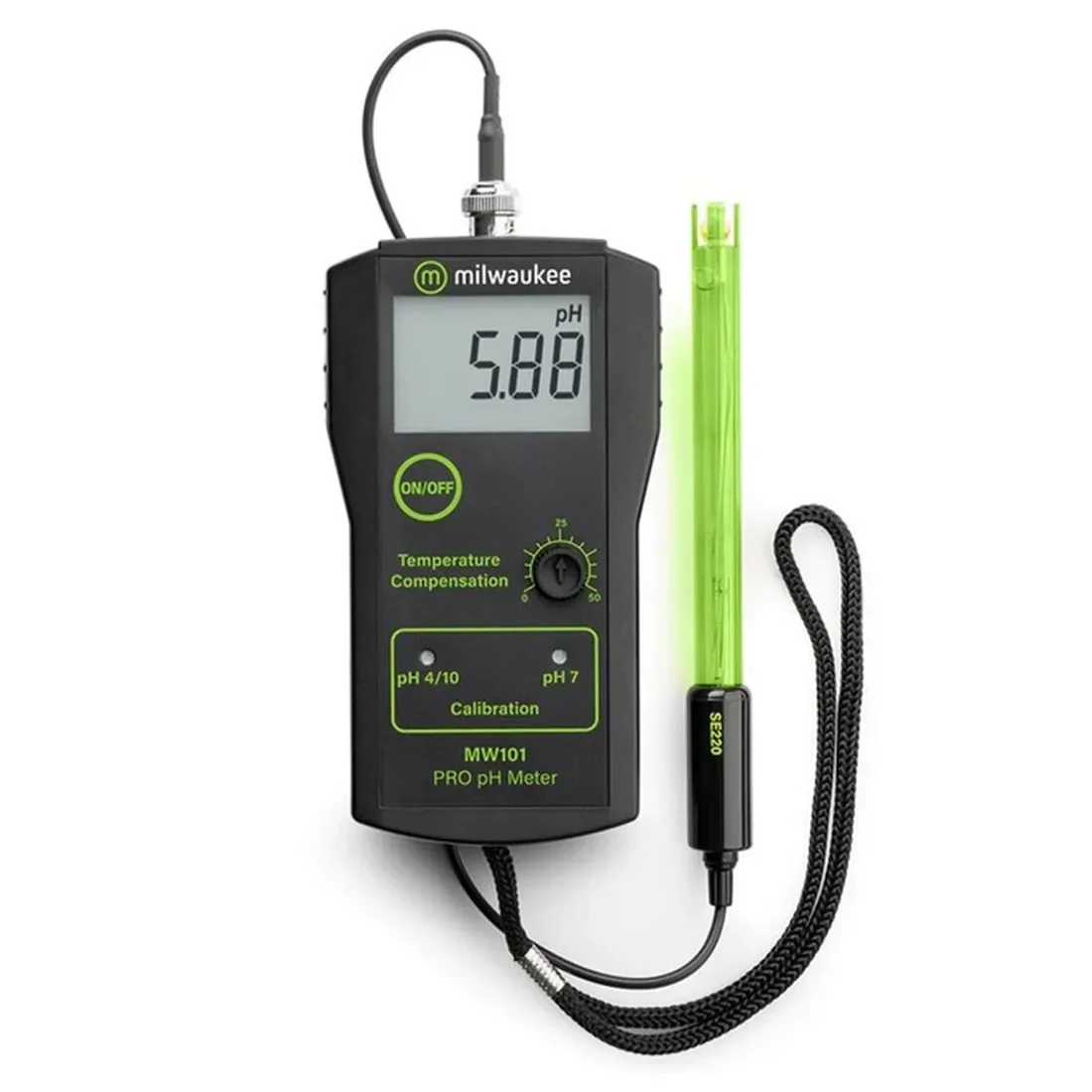 Milwaukee MW101 PRO er en pH-måler designet til præcise målinger i laboratorier, akvarier og dyrkning. Den leveres med en SE220 pH-elektrode og et 1 meter langt kabel, så du har fleksibilitet til at måle i forskellige opstillinger.