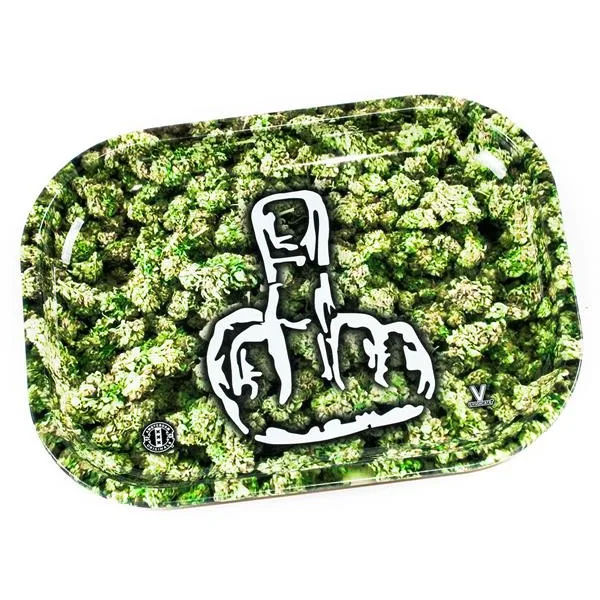 Metal bakke til at rulle på, måler 18 x 14 x 1 cm Motiv : Masser af buds, og en en midter finger til haters.
