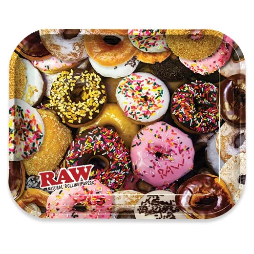 Stor rulle bakke i metal, med god fråder Metal bakke til at rulle på, måler 34 x 27,5 cm Motiv : Donuts