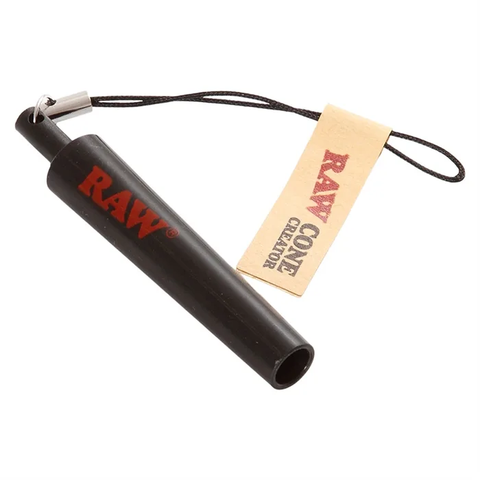 Lille praktisk værktøj til at hjælpe dig med at rulle joints, du ruller blot en passende filter tips, og indsætter I bunden af den koniske RAW Cone Creator. Derefter ruller du jointpapiret uden om filtertipsen og den koniske form. Rul den stramt, slik på lim linjen, og luk den sammen efter den koniske form. Til sidst hiver du I snoren for at få formen ud, og "voila!" har du din perfekt rullet RAW cone.