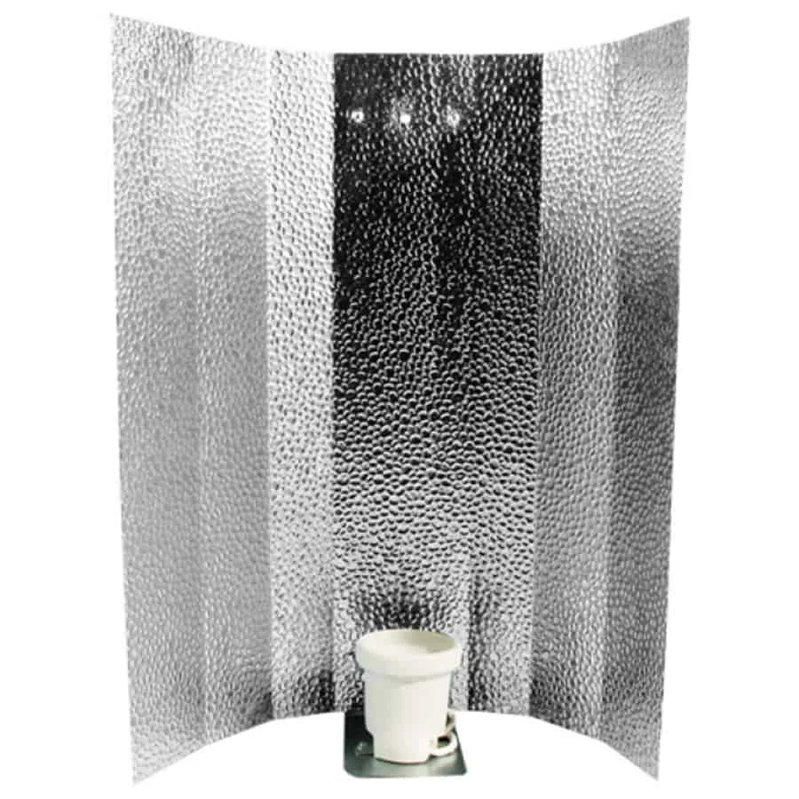 En standard gro-reflektor på 47x47 cm til dig der har brug for at få mest muligt ud af lyset fra din pære. Den blanke hammered finish reflekterer lyset ned mod planterne, så du udnytter energien bedre end med en bar pære.