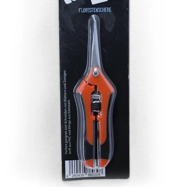 Saks i rustfrit stål, med plastic / gummi greb, perfekt saks til at trimme buds med.