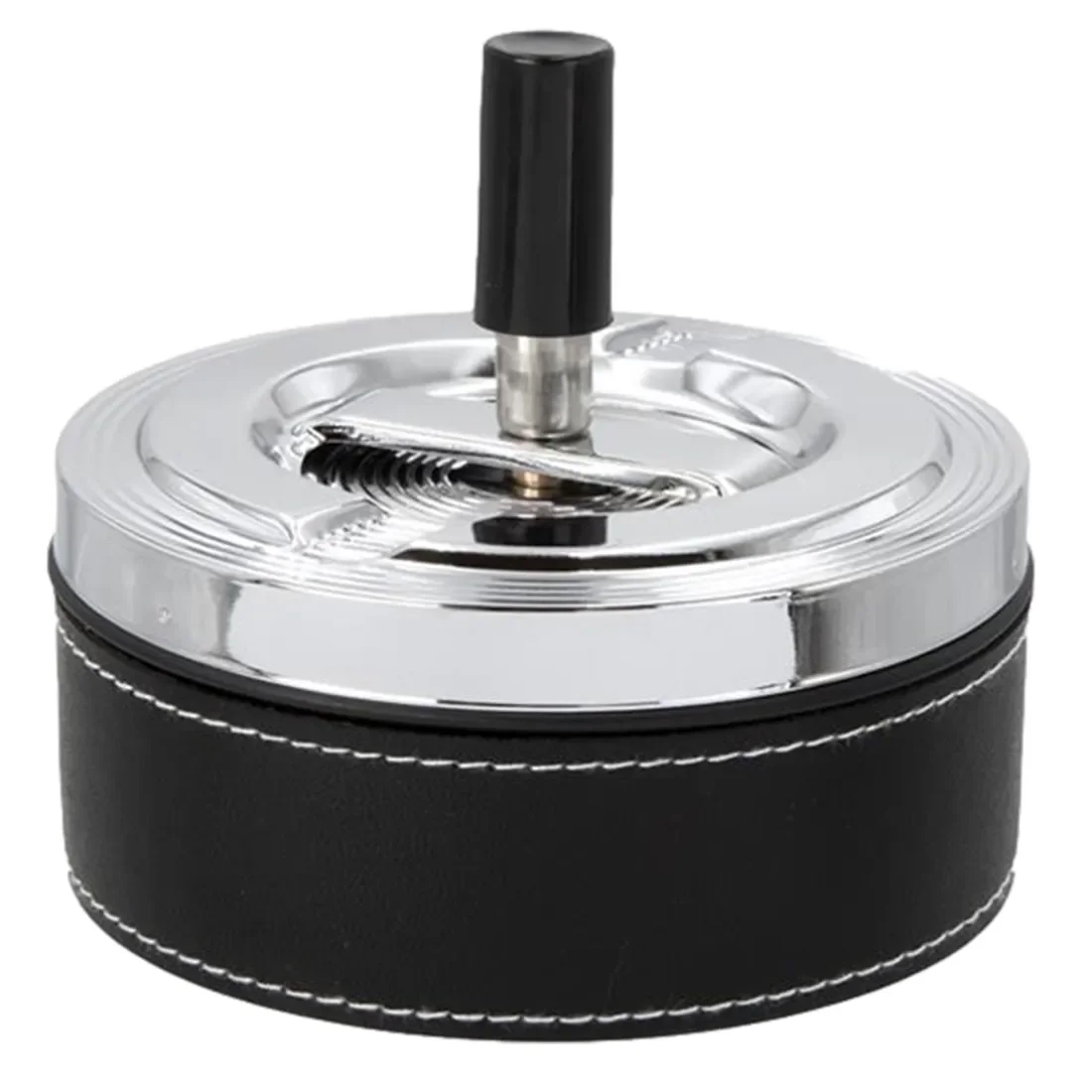 Scott Læder Spin Askebæger kommer med en klassisk spinfunktion der gør det nemt at holde bordet rent. Den roterende top i låget fjerner hurtigt og effektivt asken med et enkelt tryk, så den forsvinder ned i askebægeret. Det er en praktisk mekanisme der også hjælper med at holde lugt inde.