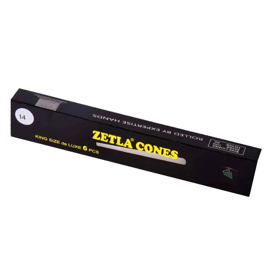 Zetla De Luxe cones i King Size kommer her i en pakke med 6 stk. De er færdigrullede med filter og lavet af papir, der brænder jævnt. Disse De Luxe Cones fra Zetla er nemme at fylde og praktiske, hvis du lige skal have nogen med på farten.